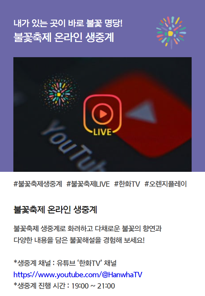 다가오는 10월 5일 토요일, 즐거운 불꽃축제 관람 되시기 바랍니다! 🎇✨